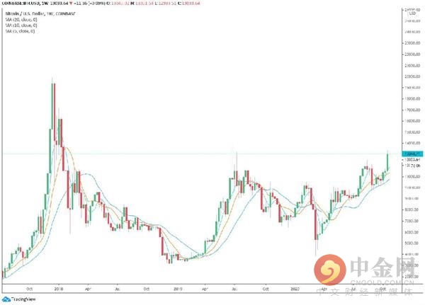 10月26日,比特币正式迎来了自2018年1月以来首次完成13000美元以上的周线蜡烛图。