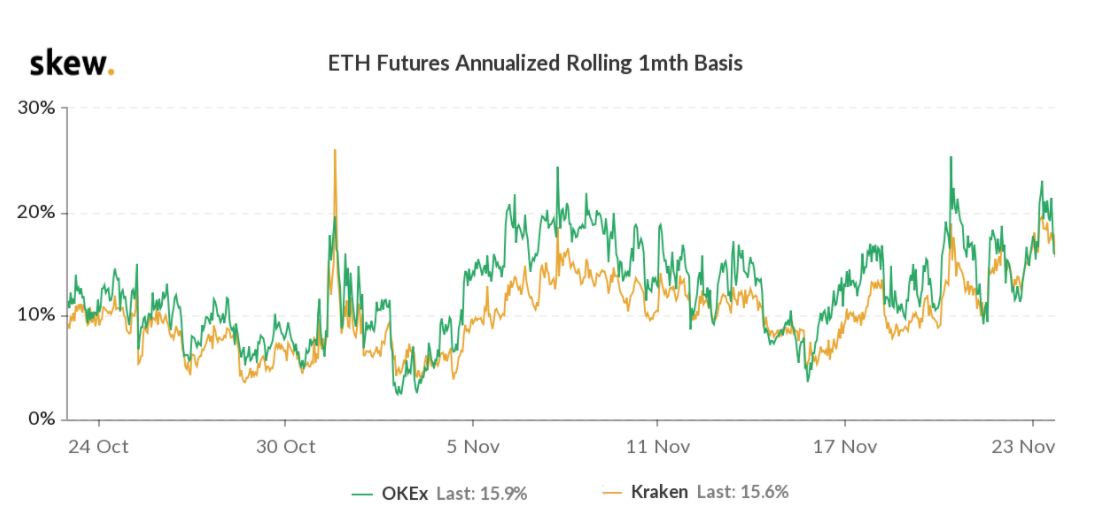 ETH 3个月期期货合约有25%的偏差。资料来源:歪斜