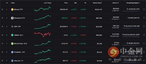 例如,XRP在昨天一度达到了每枚币0.71美元的价格。与此同时,ETH飙升至610美元。而LTC则在该水平下方经历了漫长的熊市后,突破了90美元。比特币继续表现出强势,因为它仍然接近19,000美元。