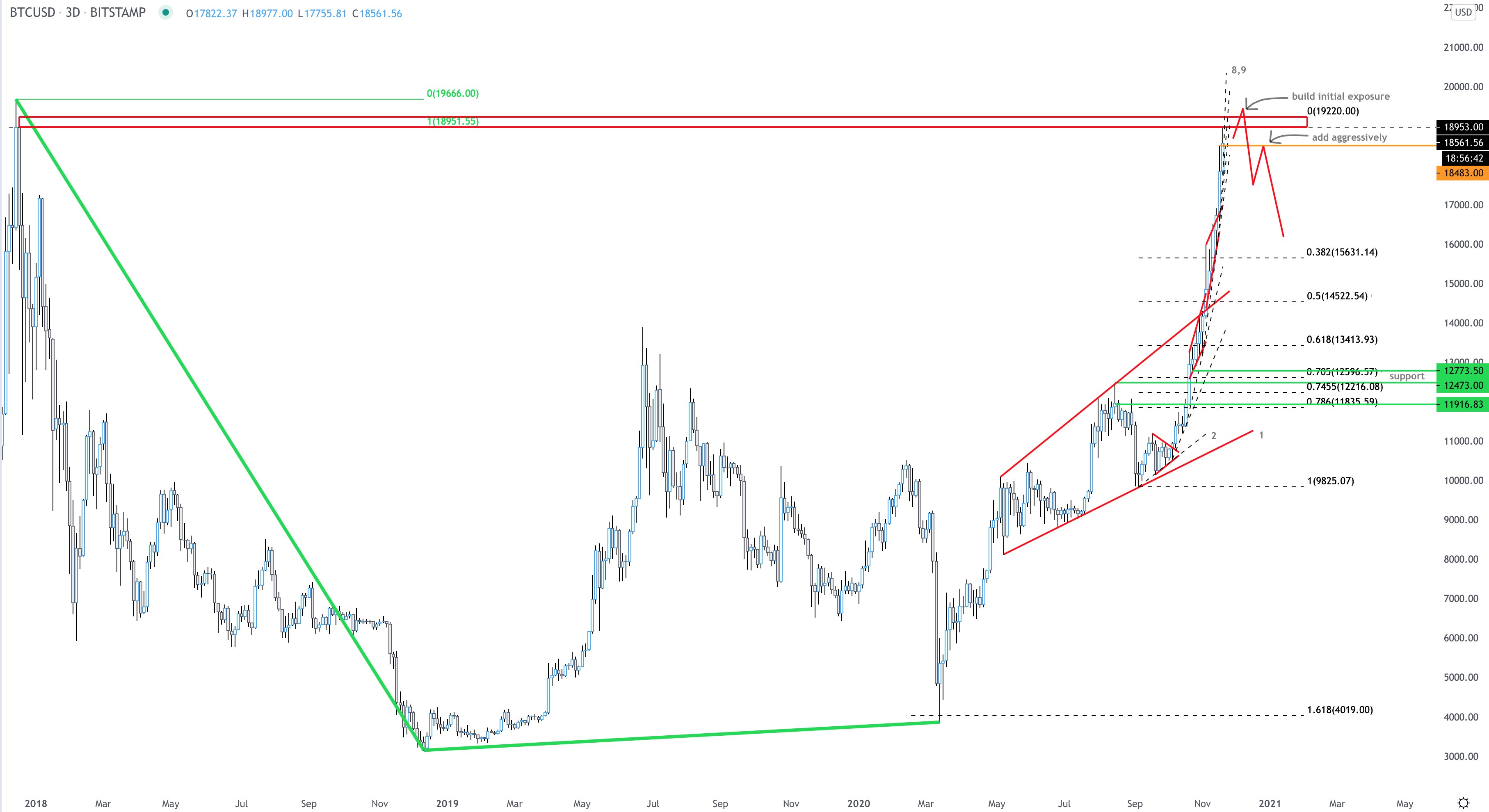 如果比特币超过$ 20,000,它将在寻找新的上限时进入价格发现。超过20,000美元,没有历史数据或证据表明BTC将以某个价格达到顶峰。