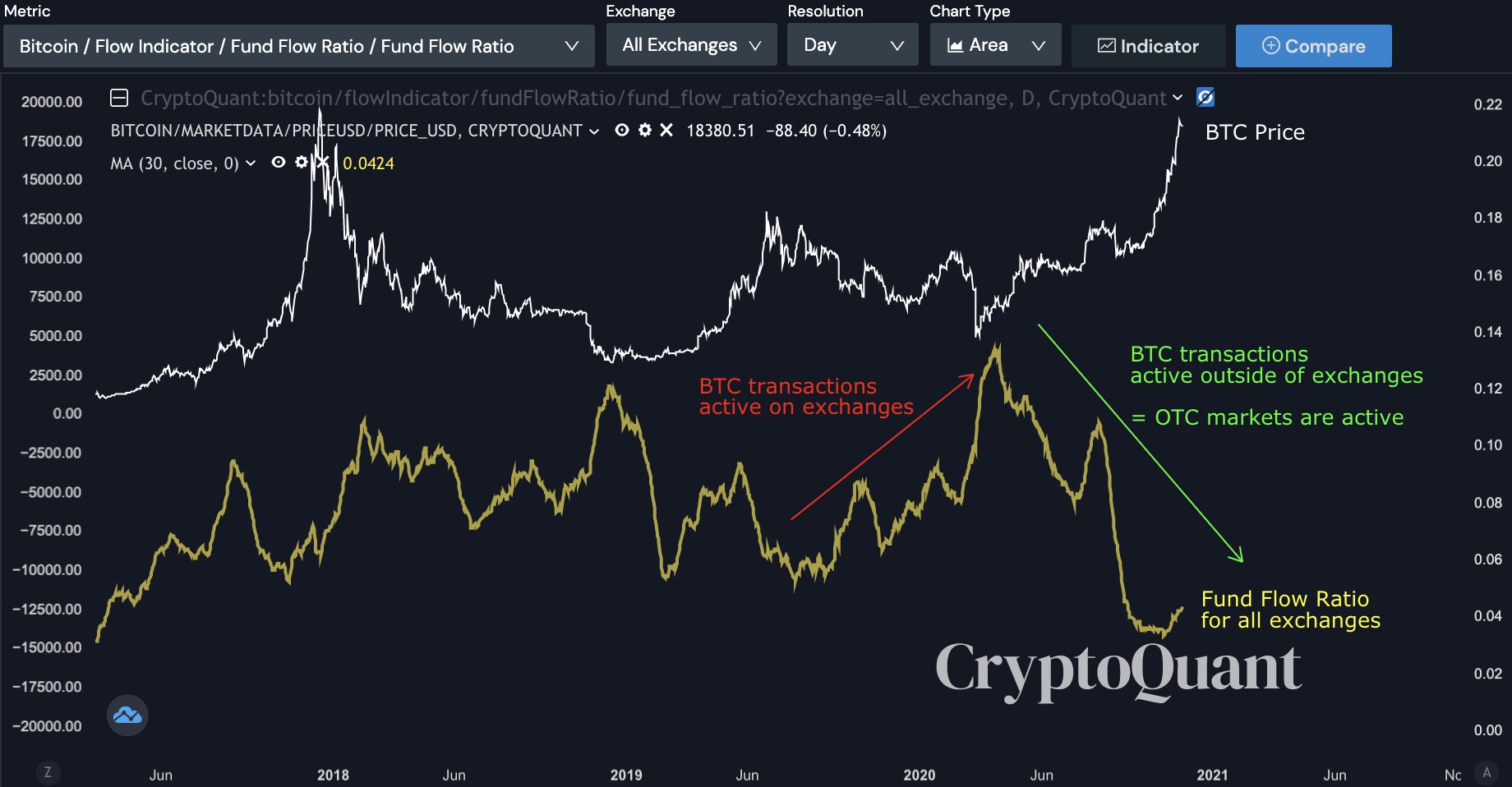 尽管如此,链上数据仍显示场外(OTC)市场活跃。这通常表明鲸鱼,高净值投资者和机构可能正在购买比特币。