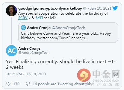 不过这种情况可能很快就会改变,Cronje透露,Yearn.financial团队正在 “敲定 ”一些合作项目,将 “在[未来]约1-2周内上线”。