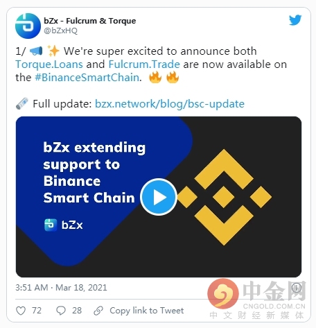 区块天眼APP讯 : 由于以太坊在交易费用方面没有任何减少的迹象,更多的DeFi平台正在转向其竞争对手币安智能链(BSC)。根据3月17日的公告,bZx是最新的一个。